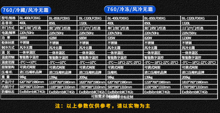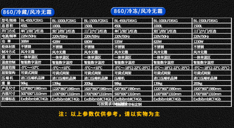 不銹鋼防腐防爆冰箱BL-500LCBXG-860冷藏直冷