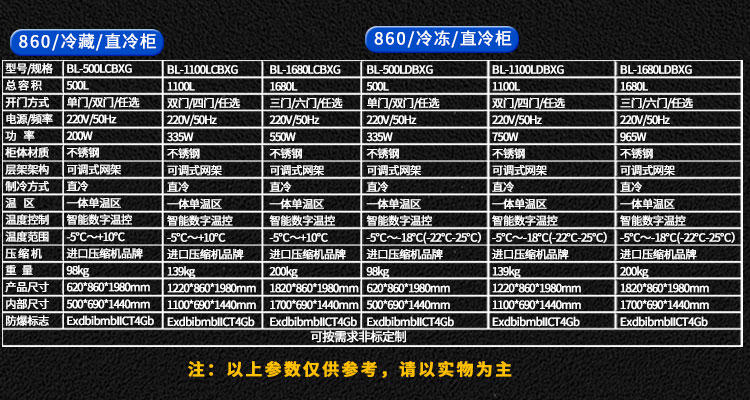 不銹鋼防腐防爆冰箱BL-400LFDBXG-760冷凍風(fēng)冷無霜